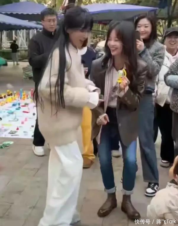 那些只存在在我们童年的游戏项目,两人都玩的不亦乐乎, 王冰冰眼睛跟随着自己想要的礼物,用套圈在一遍遍尝试,完全没有觉得这是在拍摄,反而就像是真正回归到自我本身。